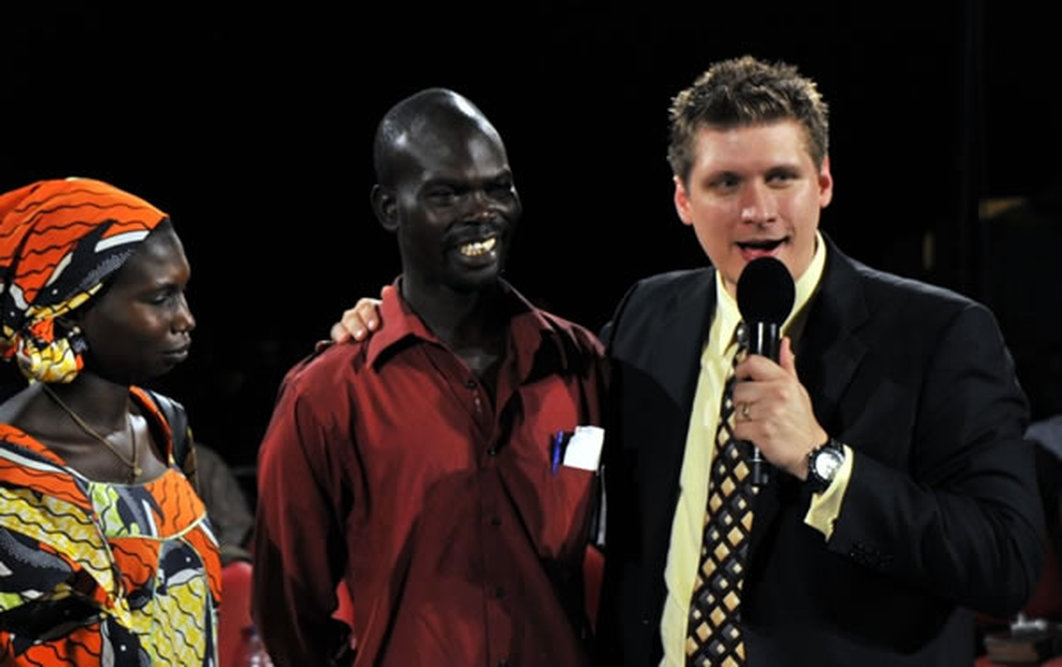 - Un homme, musulman, incapable de se baisser, fut totalement et instantanément guéri. Il annonça à la foule que Jésus l'avait guéri et dit ouvertement : « Merci Jésus ! »