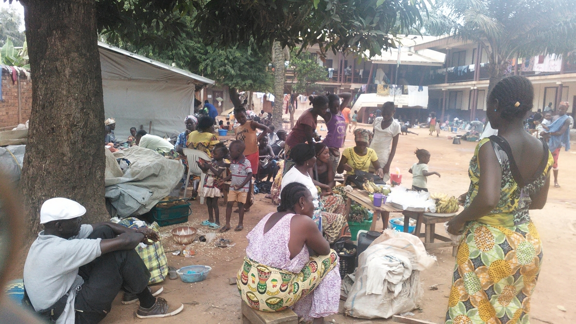 Réfugiés dans la cour d'une église