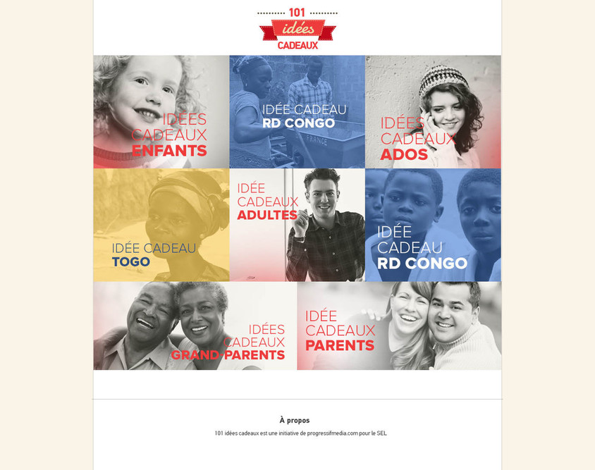 Pour vous aider à faire votre liste de cadeaux, Progressif Média a mis en place le site www.101ideescadeaux.fr qui recueille des idées cadeaux proposées par des éditeurs, des artistes, des titres de presse... chrétiens : CD, livres, jeux, abonnements, articles du commerce équitable vous sont proposés en 1 seul site.